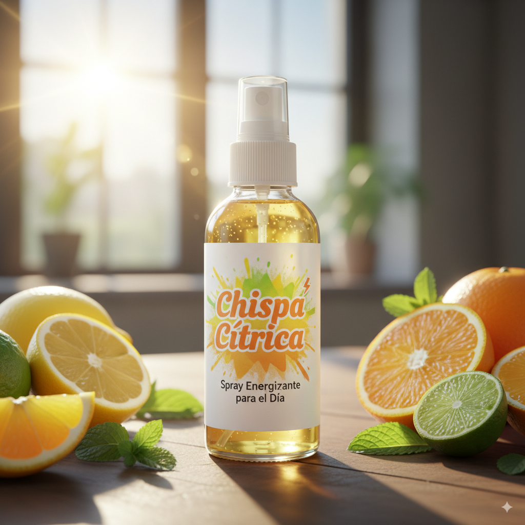 Este spray energizante es el compañero ideal para revitalizar tu día, con una fórmula ligera que despierta los sentidos y potencia la concentración. Elaborado con una base de agua destilada y hamamelis, este spray combina las propiedades estimulantes de los aceites esenciales de naranja dulce, menta piperita y romero, creando un aroma fresco, cítrico y herbal que eleva el ánimo y mejora el enfoque. Perfecto para usar en la mañana, durante el trabajo o en momentos de fatiga, este spray aporta una explosión de energía natural y un toque refrescante que perdura.